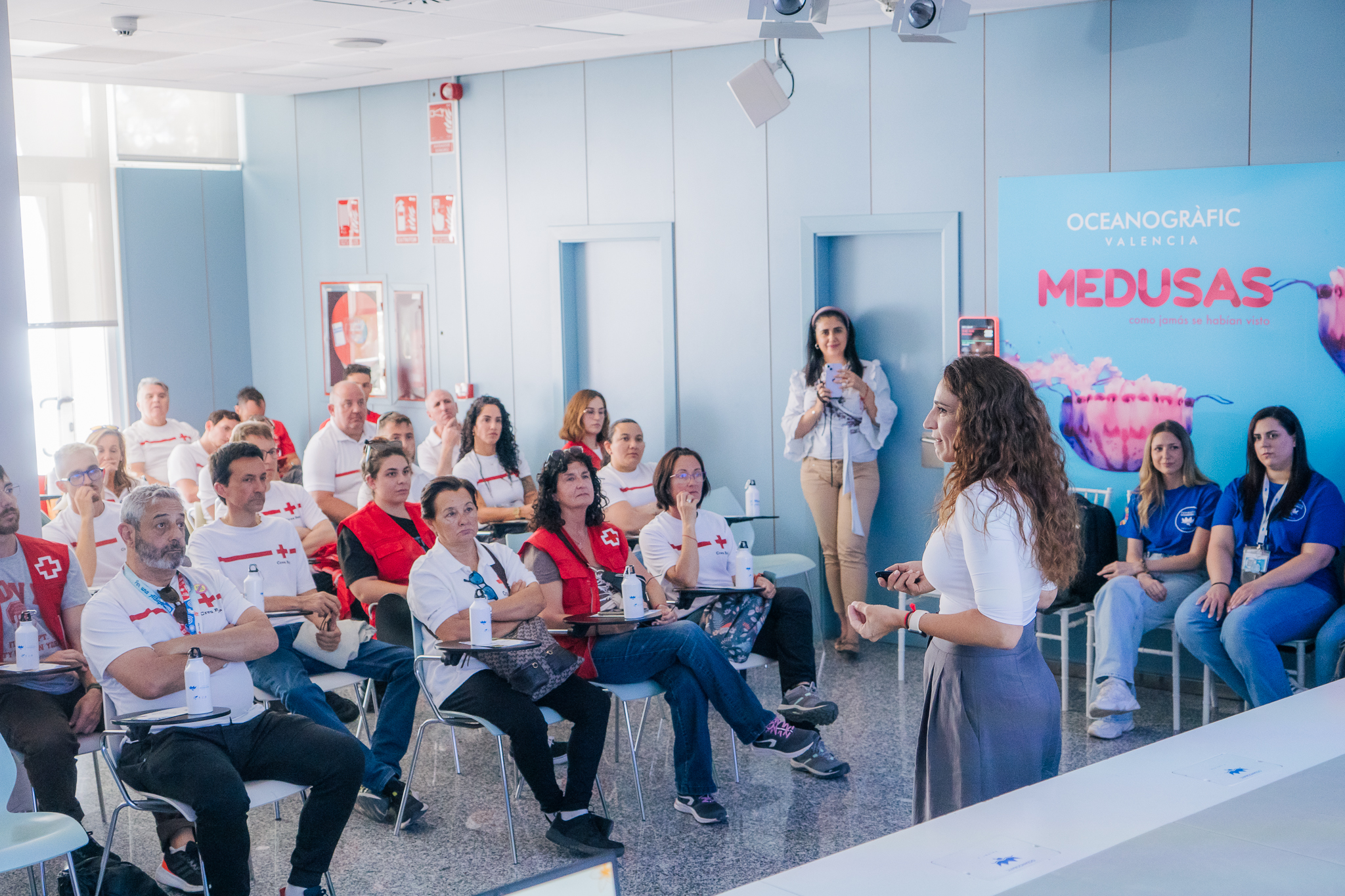Con la proximidad del verano y la presencia de socorristas en las playas de la Comunitat Valenciana, el equipo de la Fundación Oceanogràfic realizó ayer una formación especializada dirigida a 50 voluntarios de Cruz Roja de la Comunitat Valenciana que trabajan en las costas.